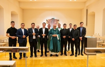 Graz, 10. September 2025: Im Grazer Priesterseminar feierte Bischof Wilhelm Krautwaschl eine Morgenmesse mit rumänischen Gastseminaristen und einem polnischen Gastpriester, die derzeit mehrere Wochen in der Diözese verbringen. Ziel ihres Aufenthalts ist es, Deutsch zu lernen und die kirchliche Realität in der Steiermark kennenzulernen.