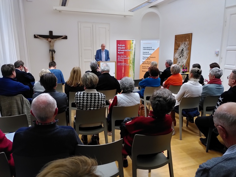Der Jesuit Pater Toni Witwer überzeugte in seinem Vortrag, in der Kooperationsveranstaltung des Forums Glaube, Wissenschaft und Kunst und dem Bildungsforum Mariatrost am 25.1.2023, in dem er die Anerkennung der eigenen Hilfsbedürftigkeit und die Dankbarkeit für das Geschenk des Lebens in den Mittelpunkt stellte. ,Wir sind von Gott geliebt und gewollt‘.