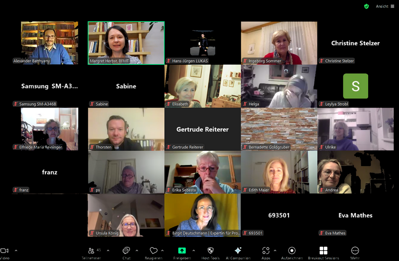 Unter der achtsamen Moderation von Erwachsenenbildnerin und Diversitätsfachfrau Mag.a Edith Zitz präsentierten die Religions-Vertreter:innen bzw. Referierenden ihre jeweiligen Beiträge zum Thema dieser Einheit, das angesichts der aktuellen weltpolitischen Situation ja nicht zu den ,Wohlfühlthemen‘ zu zählen ist. Besonders hervorzuheben ist die gelungene Online-Zuschaltung des hinduistischen Vertreters aus Übersee!