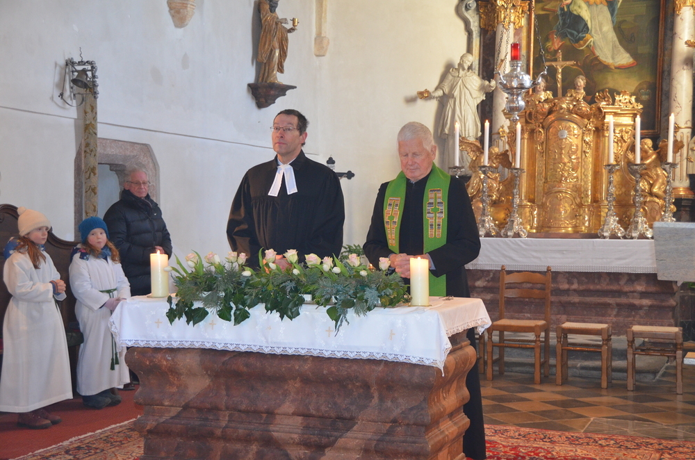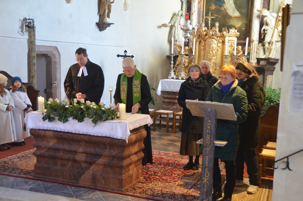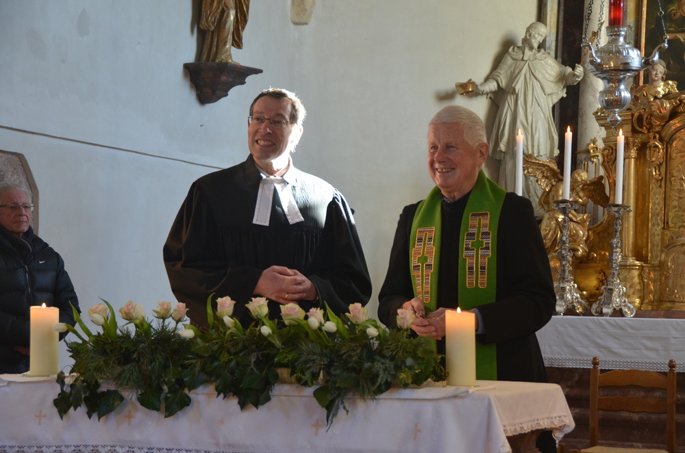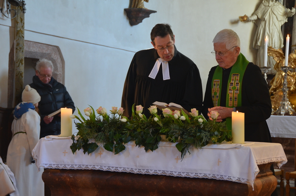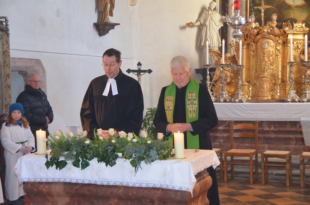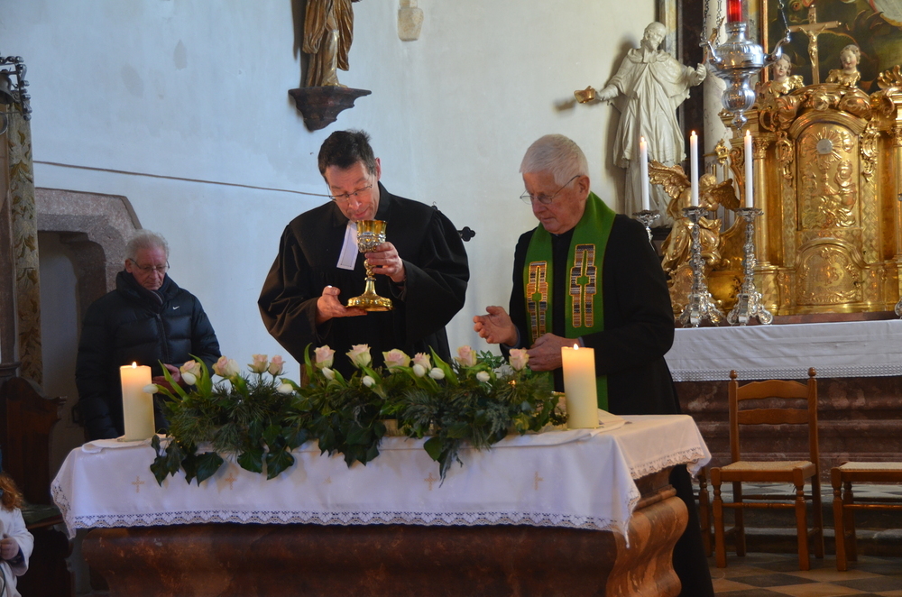 Am Sonntag, 28.01.2024 wurde in der Margarethenkirche in Peggau aus Anlass der Gebetswoche für die Einheit der Christen ein Gottesdienst mit der Evangelischen Gemeinde gefeiert. Die Messe wurde vom Festprediger Mag. Johannes Erlbruch, dem Pfarrer der Evangelischen Gemeinde in Peggau, und Prof. Schlacher sehr eindrucksvoll gestaltet. Als Zeichen der Einheit zwischen den evangelischen und katholischen Christen wurde auch die Eucharistie gemeinsam zelebriert. Anschließend lud der Pfarrgemeinderat die Kirchenbesucher zu einer gemütlichen Jause bei Kaffee, Tee und Mehlspeisen ins Mesnerhaus ein. Ein herzliches Dankeschön an die fleißigen Helfer und alle, die die schmackhaften Kuchen und Weckerl beigesteuert haben!