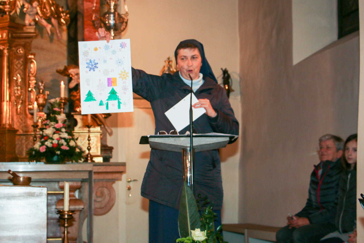 Am Beispiel des Schusters Martin hörten die Kinder, was es heißt: „In jedem Menschen Jesus sehn und nicht an ihm vorübergehn!“ Der Adventkranz und die verschiedenen Adventkalender (Jungschar, Sternenkalender und einer für die Eltern) können uns helfen und erinnern, Lichtbringer für die Menschen zu sein.