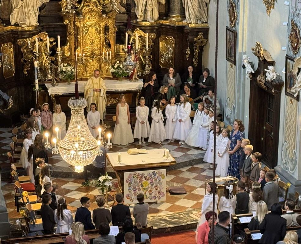 Am Fest Christi Himmelfahrt durften 42 Kinder unserer Pfarre das ganz besonderes Ereignis ihrer Erstkommunion feiern. Unter dem Motto „Hand in Hand mit Jesus um den Tisch versammelt“ empfingen die Kinder zum ersten Mal das Sakrament der Eucharistie.