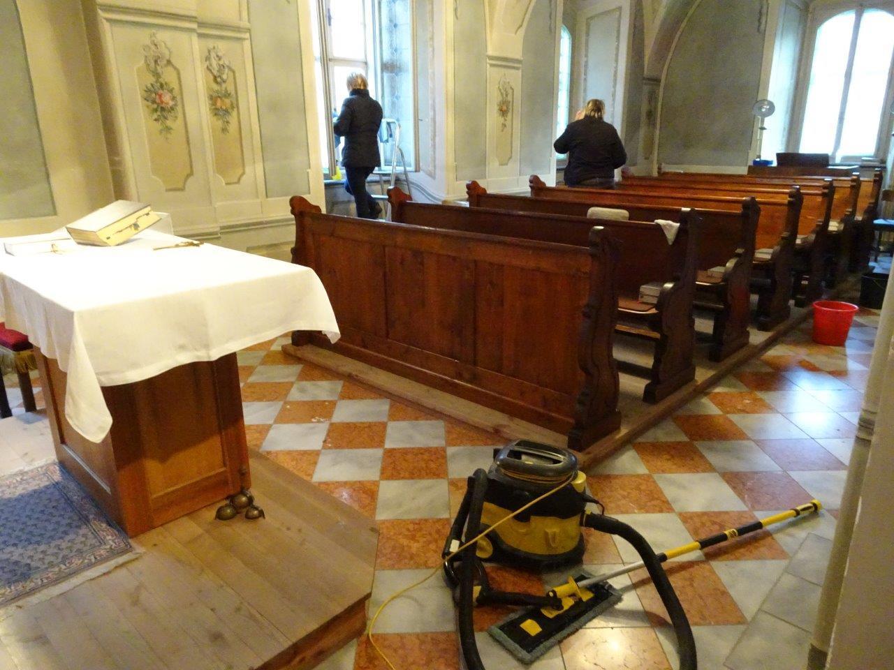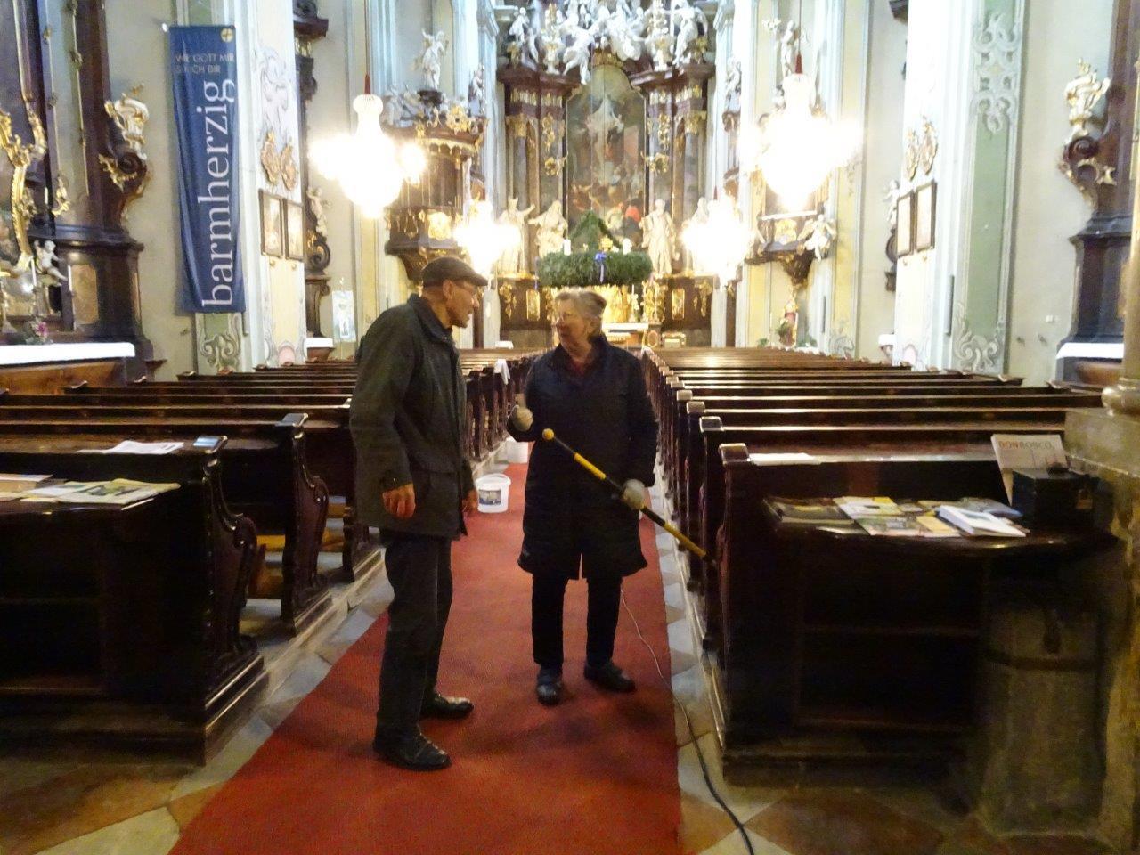 Fünf Tage vor Weihnachten erschien die Firma Eibisberger GmbH unter der Regie von Seniorchefin Heidi mit 7 Helferinnen und 2 bewährten Wasserträger sowie bestückt mit zwei Hochdruckstaubsauger aus der eigenen Buswerkstätte, um die Pfarrkirche und die Siebenväter-Kapelle wiederum auf Hochglanz zu  bringen. Pater Simon freute sich sehr über diesen tollen wertvollen Einsatz und lud alle Beteiligten hernach zu einer gemütlichen Jause ins Kloster ein.