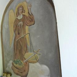 die vermutlich vom Maler Ortenberg stammten. Dargestellt sind dort auf der linken Seite die Heilige Dorathea mit den Rosen, bedeutet eigentlich „Gottes Geschenk“ (griechisch), und auf der rechten Seite der Erzengel Gabriel, bedeutet eigentlich „Mann Gottes“ (hebräisch).