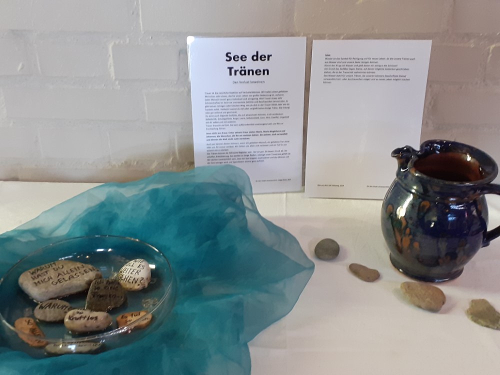 mit Symbolen vor dem Altar fordern zur persönlichen Vertiefung heraus.